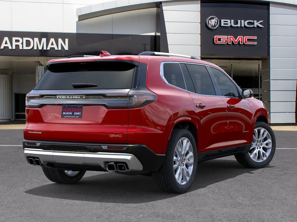 Volcanic Red Tintcoat 2026 GMC Acadia Denali FWD 8-Speed Automatic 2.5L DOHC FWD, After Dark Leather.