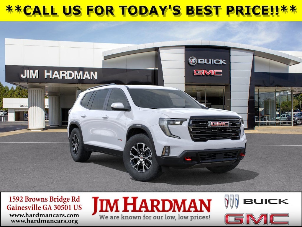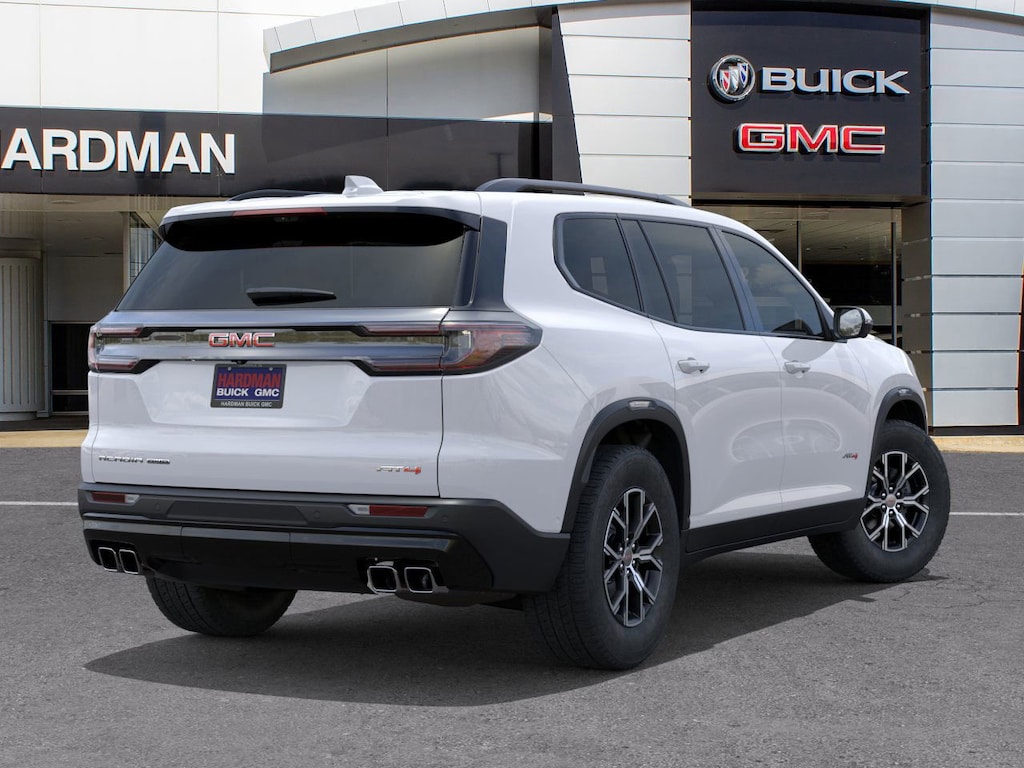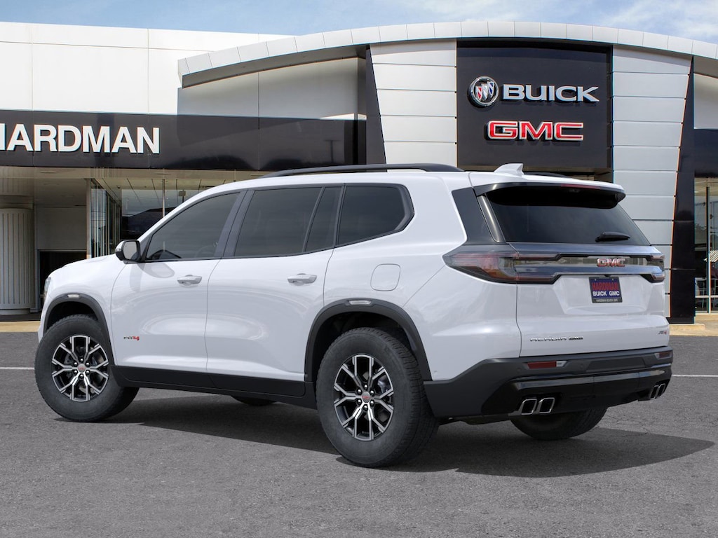 Summit White 2026 GMC Acadia AT4 AWD 8-Speed Automatic 2.5L DOHC AWD, Forest Storm W/Mahogany Accents Cloth.