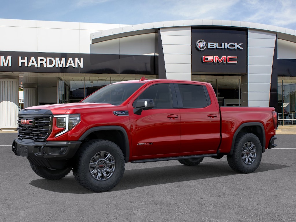 Volcanic Red Tintcoat 2026 GMC Sierra 1500 AT4X 4WD 10-Speed Automatic EcoTec3 6.2L V8 10-Speed Automatic, 4WD, Obsidian Rush Leather.