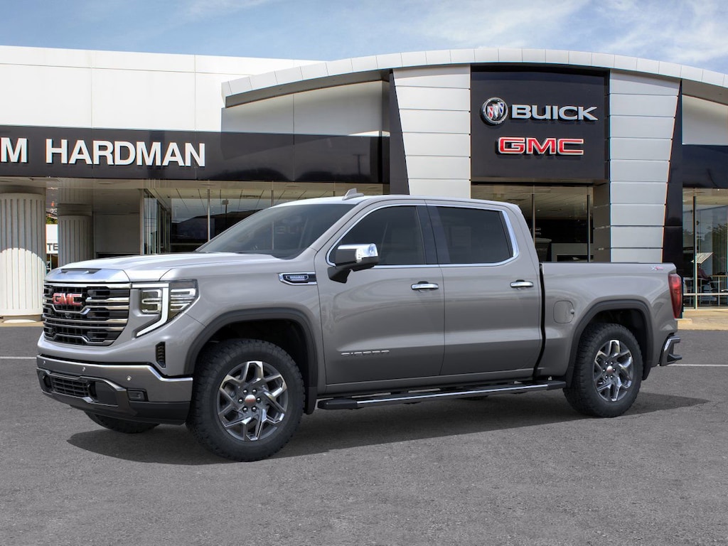 Sterling Metallic 2026 GMC Sierra 1500 SLT 4WD 10-Speed Automatic 3.0L I6 10-Speed Automatic, 4WD, Dark Walnut/Slate Leather.