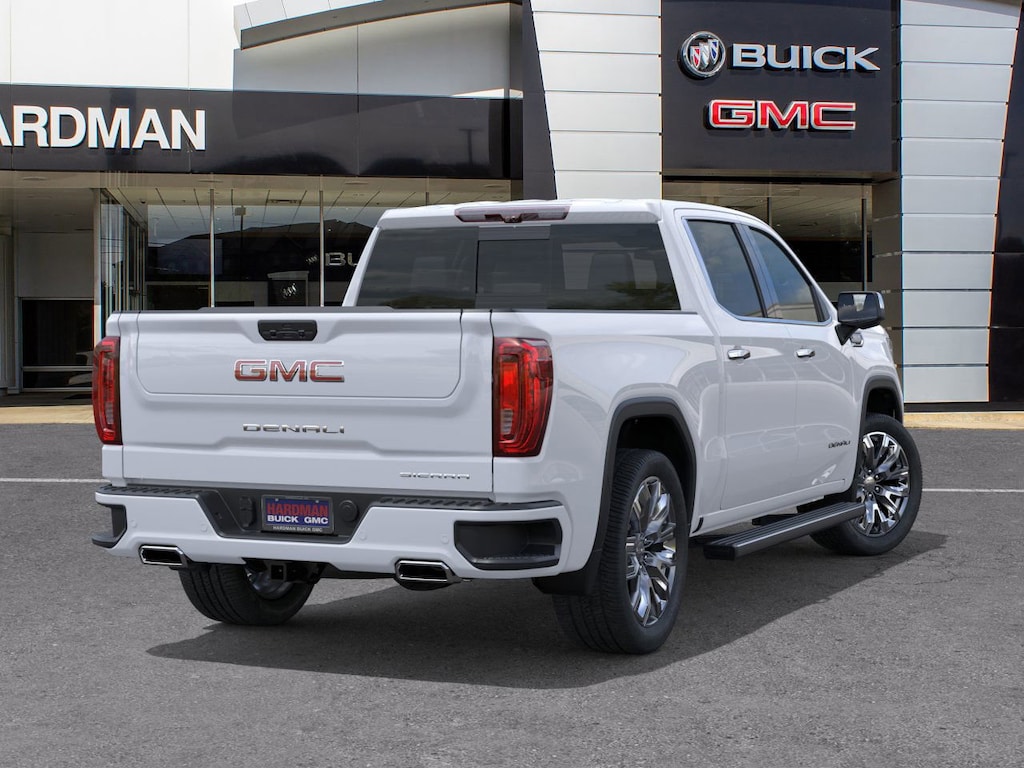 Glacier White Tricoat 2026 GMC Sierra 1500 Denali 4WD 10-Speed Automatic EcoTec3 6.2L V8 10-Speed Automatic, 4WD, Atmosphere/Brownstone Leather.