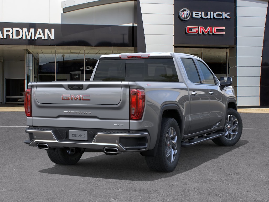 Sterling Metallic 2026 GMC Sierra 1500 SLT 4WD 10-Speed Automatic 3.0L I6 10-Speed Automatic, 4WD, Dark Walnut/Slate Leather.
