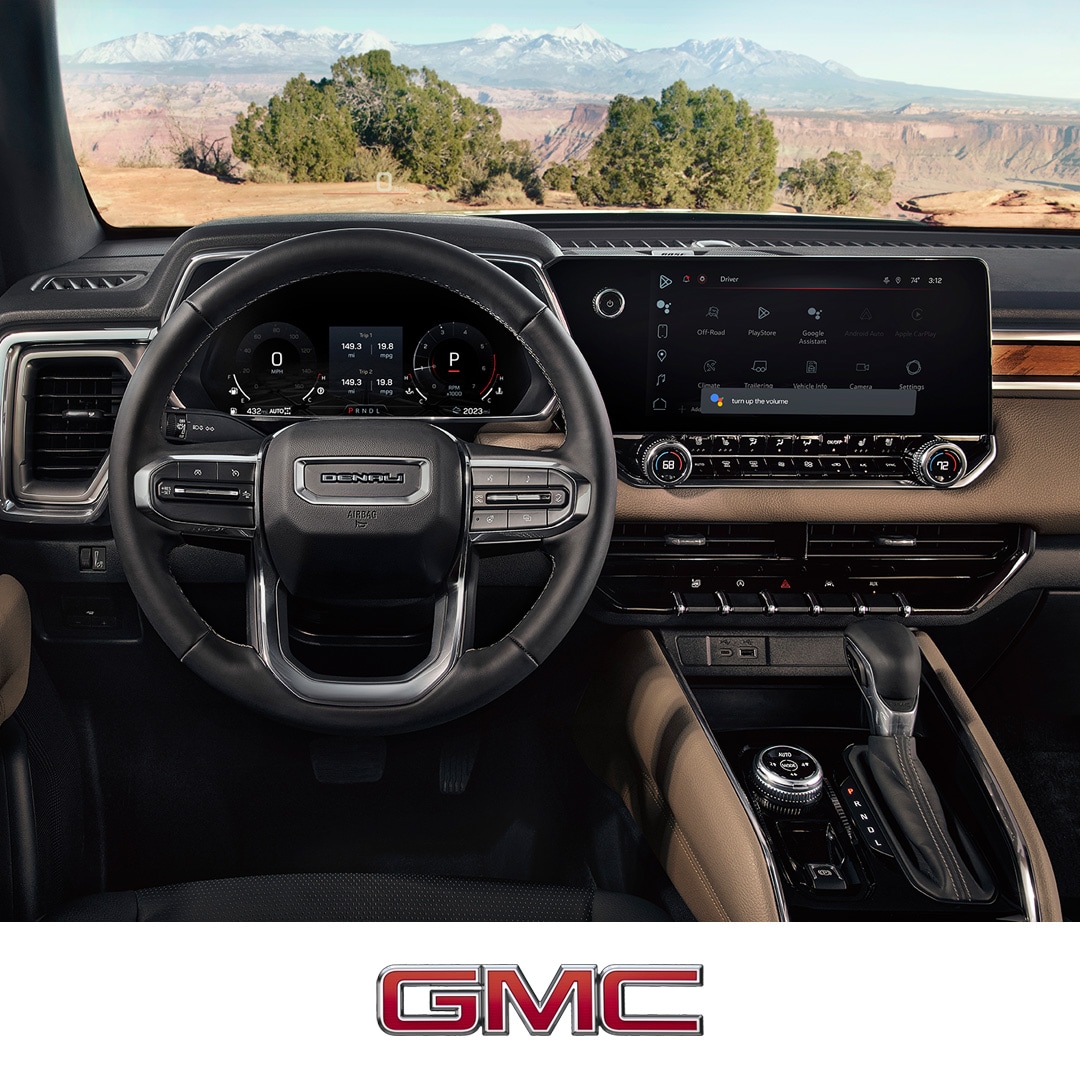 The 2024 GMC Canyon is equipped with cutting-edge technology designed to enhance convenience, safety, and entertainment on the road. Available camera views, including underbody cameras and high-definition surround views, provide a comprehensive view of the vehicle's surroundings, making parking and off-road maneuvers easier. The Canyon also features driver-focused screens, including an 11.3" diagonal center touchscreen and a 6.3" diagonal Head-Up Display, keeping important information within sight. Selectable drive modes cater to various driving conditions, while the Off-Road Performance Display provides real-time data for off-road enthusiasts. With these advanced technologies, the Canyon offers a modern driving experience that's both intuitive and enjoyable.