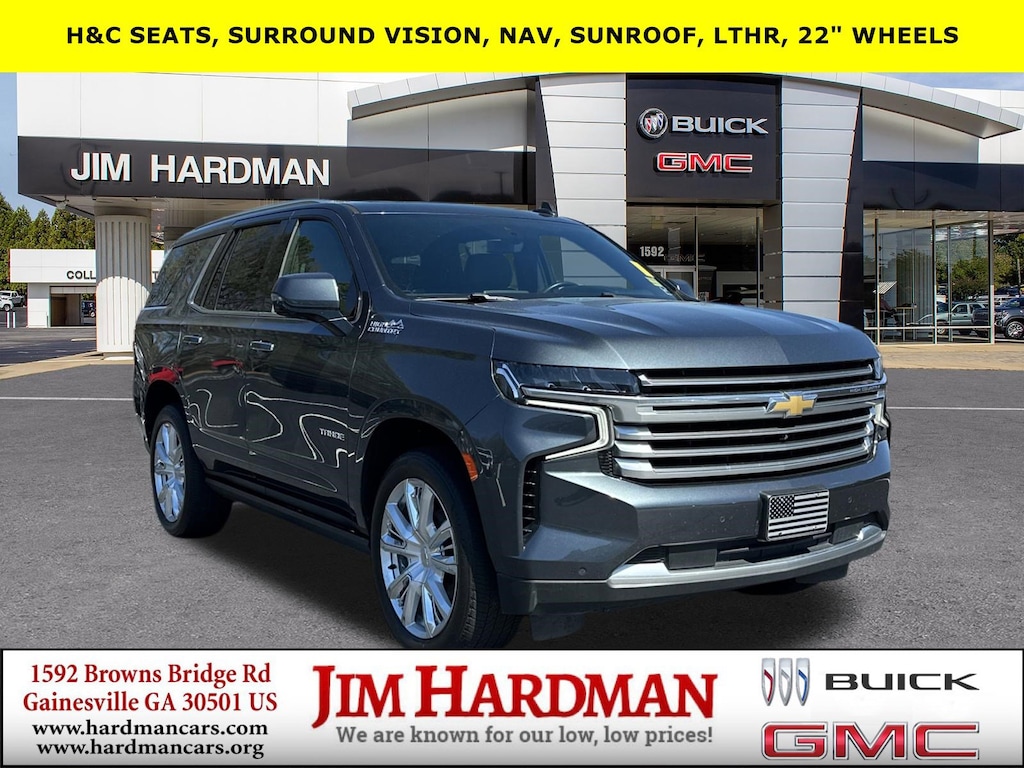 Due to our amazing pricing, please call before coming down to ensure the vehicle is still available! **NAVIGATION**, **LEATHER**, **22'' WHEELS**, **HEATED/AC SEATS**, **SUNROOF/MOON ROOF**, **BLUETOOTH**, **BLIND SPOT**, **BACK UP CAMERA**, **CLEAN CARFAX**, **ONSTAR**, **APPLE CARPLAY**, **TOUCH SCREEN CONTROLS**, **KEYLESS ACCESS W/PUSH BUTTON START**, Tahoe High Country, 4D Sport Utility, EcoTec3 6.2L V8, 10-Speed Automatic with Overdrive, 4WD, Shadow Gray Metallic, Jet Black Leather, 10 Speakers, 12-Way Power Driver & Passenger Seat Adjusters, 15" Diagonal Multi-Color Head-Up Display, 1st & 2nd Row Color-Keyed Carpeted Floor Mats, 2 USB Data Ports, 2-Speed Active Electronic AutoTrac Transfer Case, 3rd Row 60/40 Power-Folding Split-Bench Seat, Adaptive Cruise Control, Advanced Trailering Package, Advanced Trailering System, Air Ride Adaptive Suspension, Apple CarPlay/Android Auto, Automatic Heated Steering Wheel, Bright Front & Rear Door Sill Plates, Chrome Door Handles w/Body-Color Strip, Color-Keyed Carpeting Floor Covering, Driver & Front Outboard Passenger Airbags, Dual Exhaust System, Dual-Pane Power Panoramic Sunroof, Enhanced Driver Information Center, Floor Console, Floor Console w/Storage Area, Front & Rear Park Assist, Hands-Free Rear Power Programmable Liftgate, HD Radio, HD Surround Vision, Heated & Ventilated Driver & Front Passenger Seats, Heated 2nd Row Outboard Seats, Heated Driver & Front Passenger Seats, Heated rear seats, High Country Deluxe, Hill Descent Control, Hitch Guidance w/Hitch View, Infotainment Display, Inside Rearview Auto-Dimming Rear Camera Mirror, Integrated Trailer Brake Controller, Lane Change Alert w/Side Blind Zone Alert, Lane Keep Assist w/Lane Departure Warning, Leather-Wrapped Steering Wheel, LED Daytime Running Lamps, Memory Settings, Navigation System, Outside Heated Power-Adjustable Mirrors, Power Liftgate, Power Release 2nd Row Bucket Seats, Power Tilt & Telescopic Steering Column, Power-Retractable Assist Steps, Preferred Equipment Group 3LZ, Rear Camera Mirror Washer, Rear Cross Traffic Alert, Rear Pedestrian Alert, Remote Start, Safety Alert Seat, Set of 4 Wheel Locks (LPO), SiriusXM NavTraffic, SiriusXM Radio w/360L, Steering wheel memory, Steering wheel mounted audio controls, Trailer Side Blind Zone Alert, Universal Home Remote, Ventilated front seats, Wheels: 22" x 9" Sterling Silver Premium Painted. CARFAX One-Owner. Odometer is 4289 miles below market average!