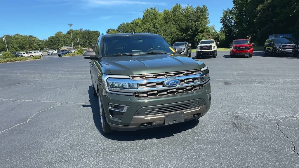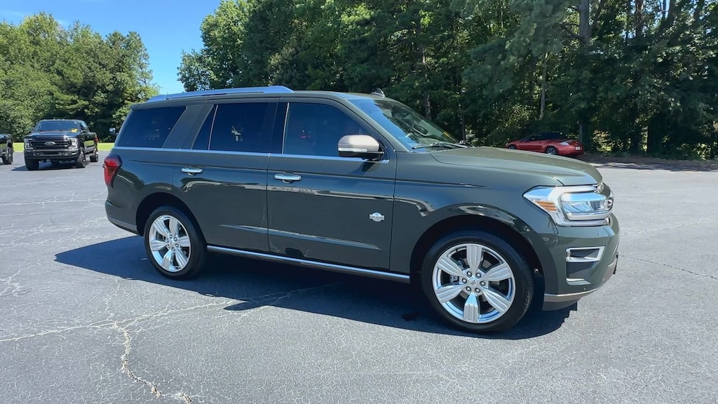 Due to our amazing pricing, please call before coming down to ensure the vehicle is still available! **NAVIGATION**, **LEATHER**, **22'' WHEELS**, **HEATED/AC SEATS**, **SUNROOF/MOON ROOF**, **BLUETOOTH**, **BACK UP CAMERA**, **CLEAN CARFAX**, **TOUCH SCREEN CONTROLS**, **KEYLESS ACCESS W/PUSH BUTTON START**, Expedition King Ranch, 4D Sport Utility, EcoBoost 3.5L V6 GTDi DOHC 24V Twin Turbocharged, 10-Speed Automatic, 4WD, Forged Green Metallic, Java Leather, 22 Speakers, Equipment Group 400A Standard Package, Exterior Parking Camera Rear, Front Bucket Seats, Garage door transmitter, Heated front seats, Heated rear seats, Heated steering wheel, Heated/Ventilated Del Rio Lthr Fr Captain's Chairs, Navigation system: Connected Navigation, Power Liftgate, Power moonroof, Radio: B&O Unleashed Sound System by Bang & Olufsen, Remote keyless entry, SiriusXM w/360L, Steering wheel memory, Steering wheel mounted audio controls, SYNC 4 w/Enhanced Voice Recognition, Ventilated front seats, Wheels: 22" 6-Spoke Polished Aluminum. CARFAX One-Owner. Priced below KBB Fair Purchase Price!