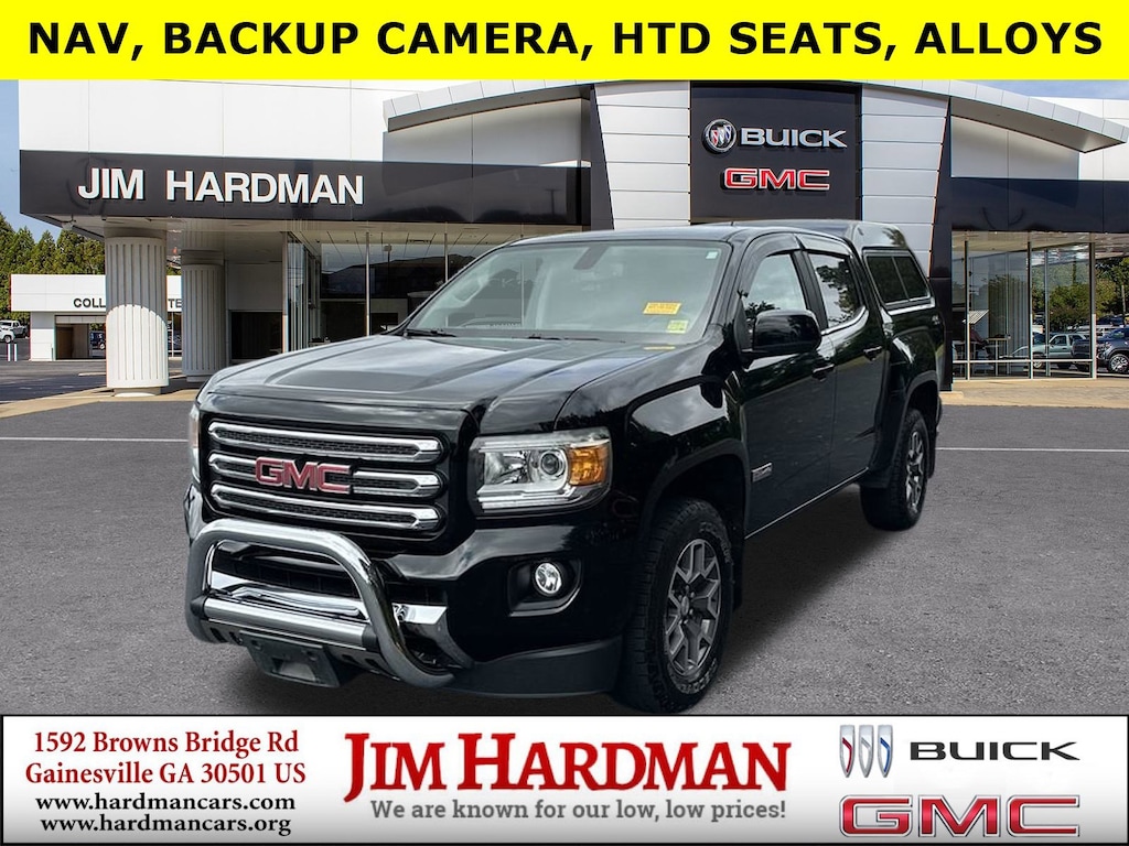 Due to our amazing pricing, please call before coming down to ensure the vehicle is still available! **NAVIGATION**, **BLUETOOTH**, **BACK UP CAMERA**, **CLEAN CARFAX**, **ONSTAR**, **APPLE CARPLAY**, **TOUCH SCREEN CONTROLS**, **KEYLESS ACCESS W/PUSH BUTTON START**, Canyon SLE1, 4D Crew Cab, V6, 8-Speed Automatic, 4WD, Onyx Black, Jet Black/Cobalt Red Cloth, All Terrain Package, Black Spray-On Bedliner w/GMC Logo, Bose Premium 7-Speaker Audio System Feature, Exterior Parking Camera Rear, Front Recovery Hooks, Heated Driver & Front Passenger Seats, Hill Descent Control, Manual Rear-Sliding Window, Off-Road Suspension Package, Power driver seat, Preferred Equipment Group 4LE, Radio: AM/FM Stereo 8" Diagonal Color Touch Screen, Radio: AM/FM Stereo w/8" Color Touch Navigation, Rear Body-Color Bumper, Remote keyless entry, Remote Vehicle Starter System, Single-Zone Auto Climate Control Air Conditioning, SiriusXM Satellite Radio, SLE Convenience Package, Steering wheel mounted audio controls, Wheels: 17" x 8" Dark Argent Metallic. Clean CARFAX. CARFAX One-Owner.
